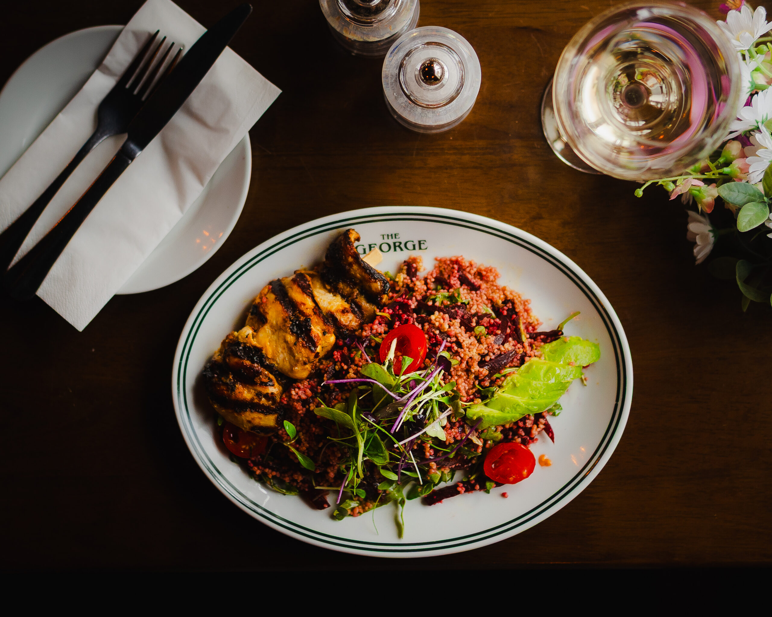 Visiting The George is an experience in itself. Set in a delightful 18th Century building, The George is bursting with undeniable character and heritage, offering all that comes with a traditional village pub visit but seamlessly mixed with style and modern-day touches.